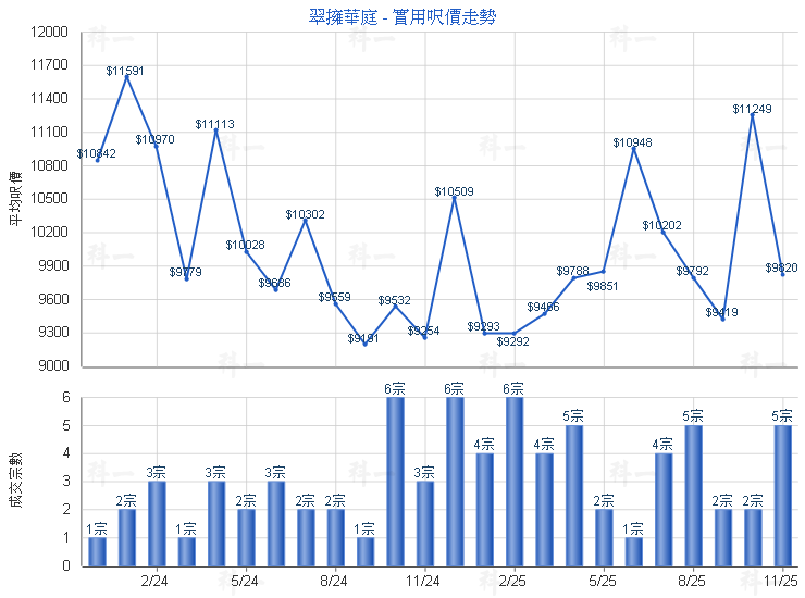 世紀21奇豐物業銀湖天峰分行經理林成豐表示,上述成交為翠擁華庭2座低層A室成交,建築面積875方呎,實用面積681方呎, 3房1廳間隔,座向東南及西北,享對流窗,望園景,成交價573.5萬元,該單位建築平均呎價為6,554元,實用面積呎價8,421元,其成交價約低於市價3%。